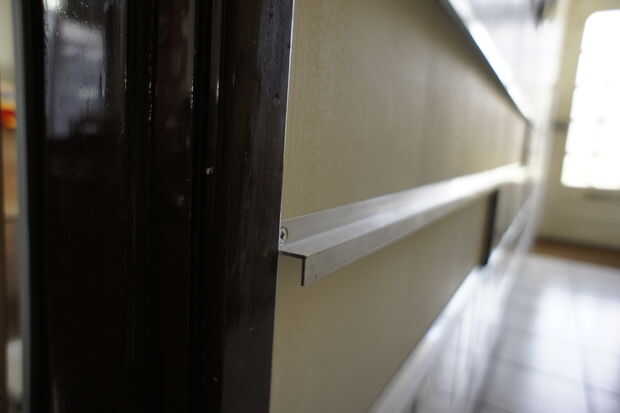 • Pone el primer perfil de aluminio encima del DVD y del tornillo en los tornillos.