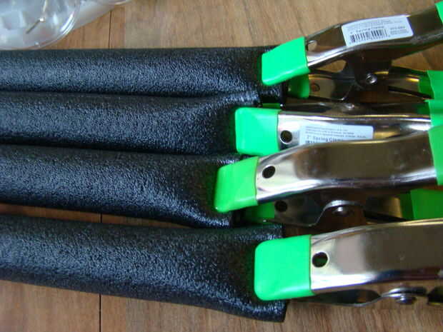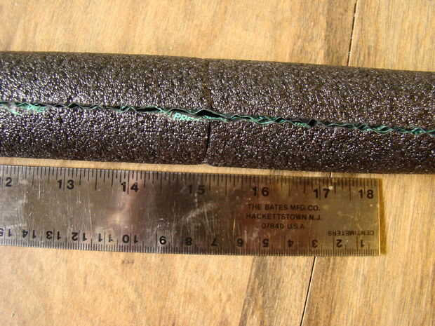 Corte 15 pulgadas piezas de la espuma envuelve la pipa.  Pegamento el lado cortado de la envoltura de tubo, había cerrado y luego pone un alambre en el centro de cada pieza de espuma.  Tener el palo final de despliegue hacia fuera un extremo, donde agregar pegamento a la apertura y usar un clap para cerrarla.  Déjelo secar durante más de una hora.