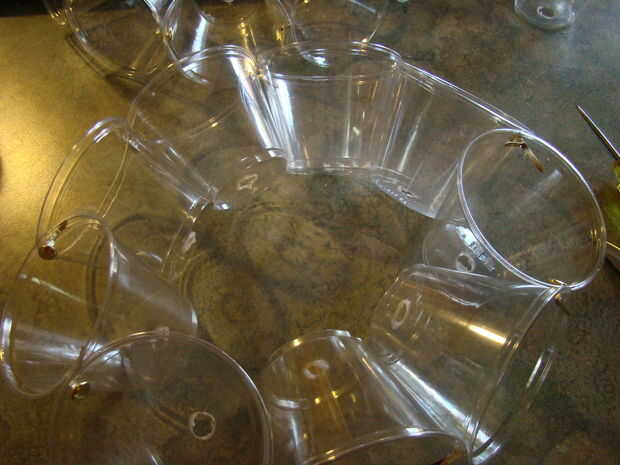 Para la 2ª fila, conecte 9 tazas en un círculo.  Que no mienten planas, hasta que los ponen en la primera fila.  Nuestro objetivo es crear una media esfera, y una vez que pone la 2ª fila sobre la fila 1, puedes ver en la 2ª fila casi completa la mitad de una esfera.