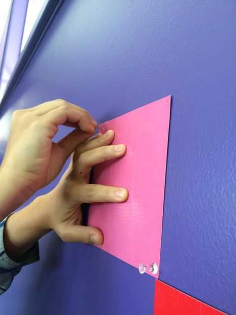 Empezar por poner la esquina inferior izquierda de la Plaza de una cinta en la pared donde se marcan con un lápiz. Enderezar con un nivel. Inserte una chincheta en la esquina y otro en la esquina superior izquierda. Lugar su segunda plaza de la cinta por debajo de la primera en una diagonal, se endereza con un nivel y fijando las dos esquinas cada vez. A partir de la media y revestimientos hacia fuera era la forma más fácil para mí.