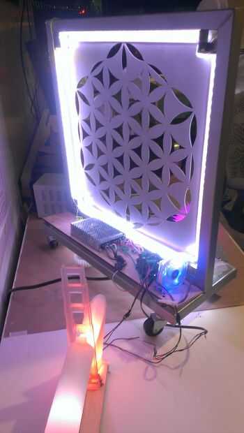 os adjunto una tira de tira de LED RGB no direccionable en el interior del marco. Este es alimentado con una fuente de alimentación y controlado por Arduino UNO y protector de 4xRGB de LumiGeek. Estoy compartiendo información adicional sobre el Arduino LumiGeek instalación bajo un Instructable separado; para obtener información adicional en LumiGeek ir a LumiGeek.com o https://www.facebook.com/lumigeek.