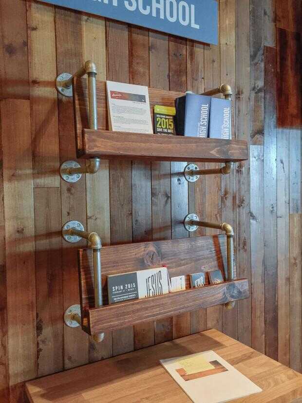 Los estantes de. Usé 3/4" tubería galvanizada para la estructura principal de los estantes. Quisiera decirte qué longitudes usé, pero base en la altura de los aviadores media, además el tamaño de los estantes de madera, además el ángulo de la inclinación de los estantes... Puede usar su propia discreción aquí.