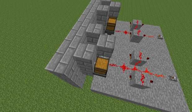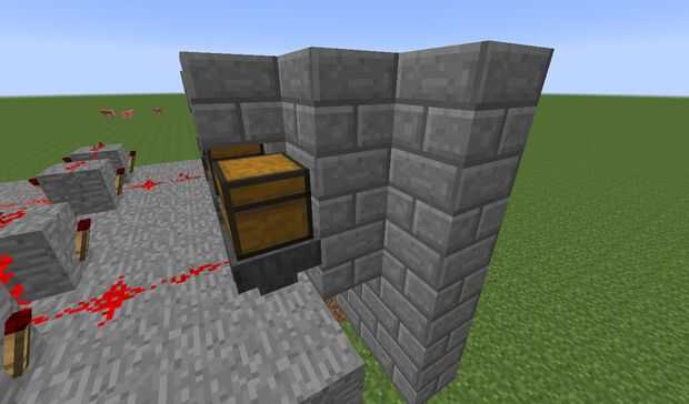 Puso el primer bloque delante de la tolva como se muestra en la imagen, luego coloque dos cuadras más arriba que bloquean por lo que será a tres manzanas de altura. Repetir este proceso al frente de cada tolva. Después de eso puso dos bloquean encima del dispensador (puede destruir el bloque tocar el dispensador, después se colocan porque usted realmente sólo necesita el bloque superior). Asegúrese de no cubrir el agujero que se hizo anteriormente. Después hemos paced todos los bloques necesarios Coloque la lava en el orificio superior (no te preocupes la lava separarse porque el agujero será atraparlo).