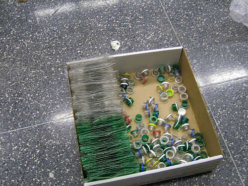 se superponen la aplane y perforado, poner la boca de la botella a través del orificio, enrosque el tapón.