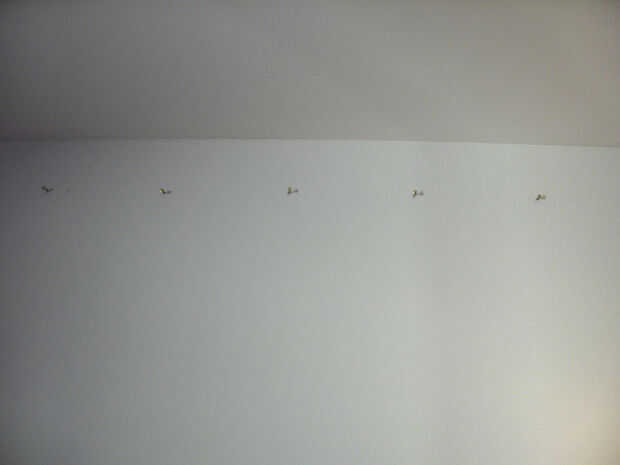 He decidido colgar las fotos sobre mi cama; la distancia entre los clavos es 19 cm, ligeramente más que el ancho de la foto habitual.