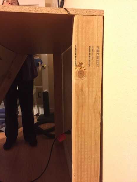 Corte 2x4s restantes para hacer las piernas de la plataforma superior. Asegurándose de que la plataforma esté nivelada. Puede empernar a sus montantes de pared si sientes la necesidad.