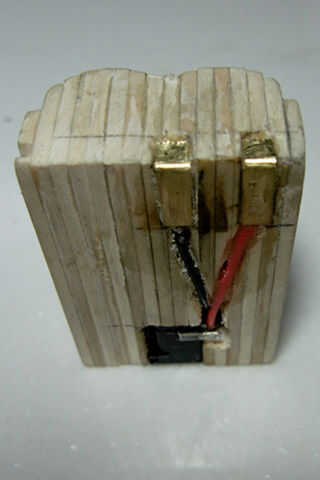 * Utilice la Sierra de marquetería, el cincel y la afición para hacer una abertura al ras con la parte inferior de la batería que es ligeramente más grande que las dimensiones exteriores de su adaptador de 2.5mm DC. El tapón debe quedar totalmente al ras en la madera de la batería.