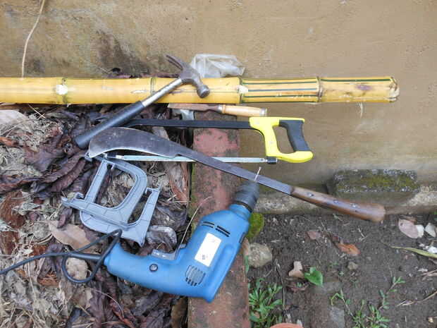 -una sierra o cincel y martillo para partir el bambú (un cincel trabajado mejor en mi caso)