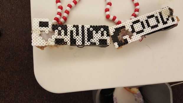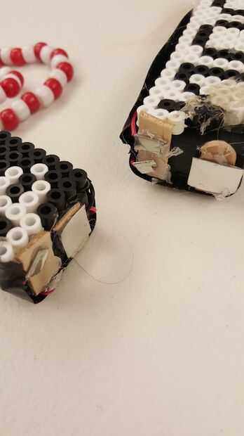 Los tecnología cordones para parejas son dos Perlers colgados alrededor del cuello (a través de un collar de perlas) que comparten la capacidad única para vencer a sus "corazones" ocultos cuando. Cada dispositivo está hecha de una combinación de cuentas Perler y componentes electrónicos básicos.