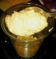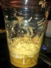 Nota: Se puede utilizar más o menos mezcla de mantequilla de maní dependiendo del tamaño de las tazas de la porción. Deje suficiente espacio para cada ingrediente de la capa dos veces.