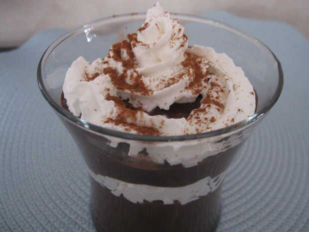 3. capa de pudín con crema batida en tazas de porciones individuales.