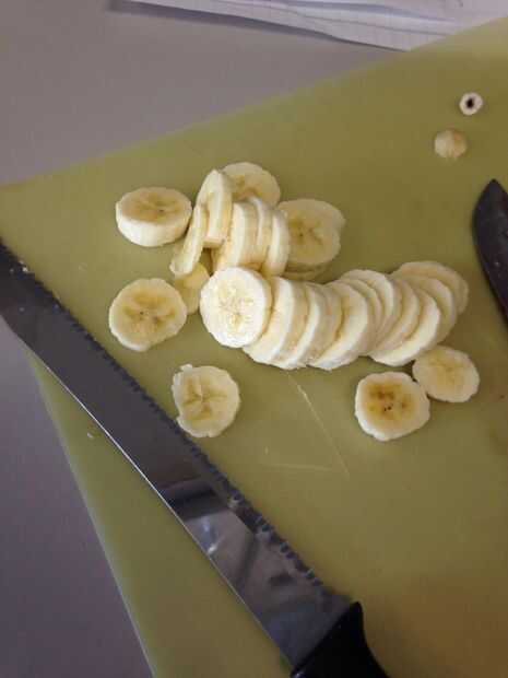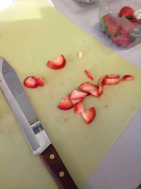 Cortar un plátano entero y dos puñados de fresas