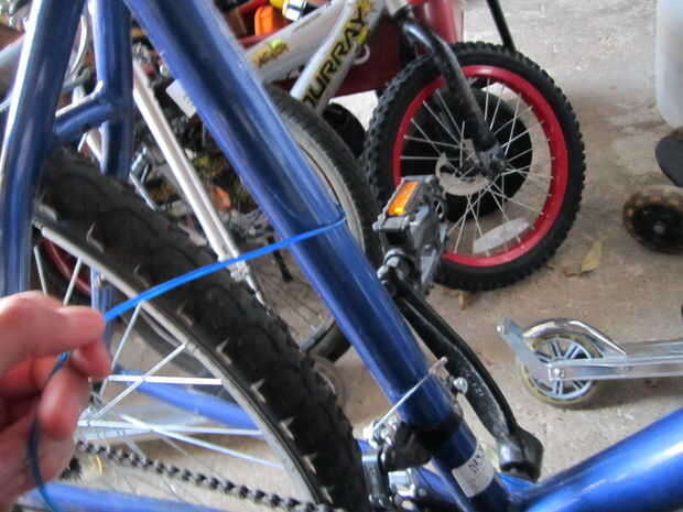 Cuál es grande sobre EL alambre que es ideal para hacer cualquier diseño que desee. Especialmente en objetos con radios, como ruedas de bicicleta o silla de ruedas, el cable, es muy divertido y agradable de hacer. En mi bicicleta, tejió una plaza y u