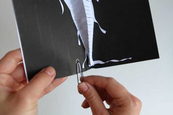 Deslice el clip para cerrar el interruptor en el símbolo de clip de papel - el LED comienza a centelleo dentro de la momia! Será especialmente visible y espeluznante en poca luz! Si el LED no enciende no preocuparse - tratar nuestro solucionador de problemas en la parte inferior.