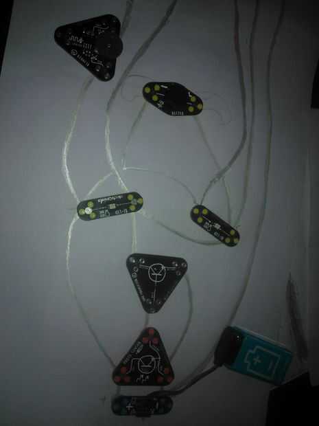 Después de dibujar el circuito toma de LED, luz intermitente, foto sensor, NP N transistor, batería de 9V, zumbador y fix para el circuito con la ayuda de acero del cojín como muestra en la foto.