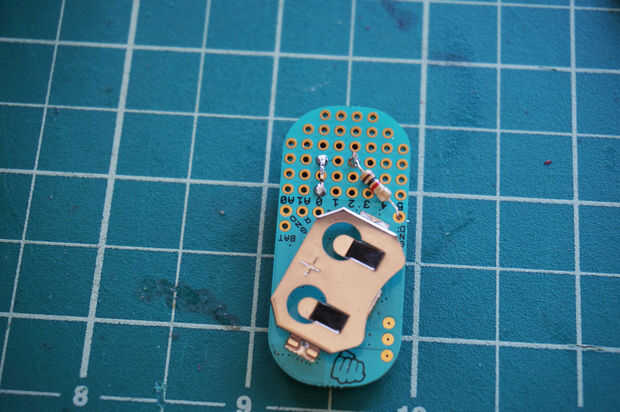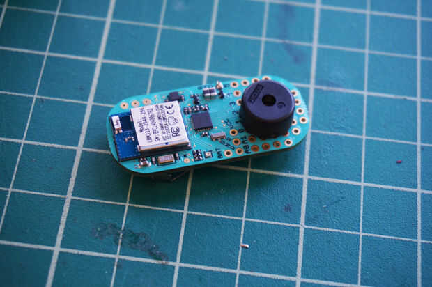 Poner el zumbador piezo en el tablero de perforación de la LightBlue Bean. Una de las patas al pin 0 en el grano y el otro a GND con la resistencia en el medio de la soldadura.