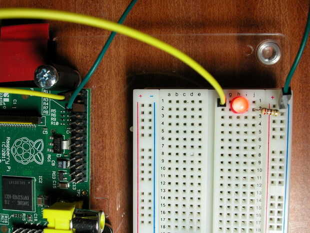 uno de la analogía electrónica clásico "Hola mundo" es hacer un parpadeo del LED. Frambuesa Pi tiene 8 pines de entrada/salida de propósito General (4,17,18,21,22,23,24,25) que pueden ser configurados como entrada/salida y vuelta encendido/apaga