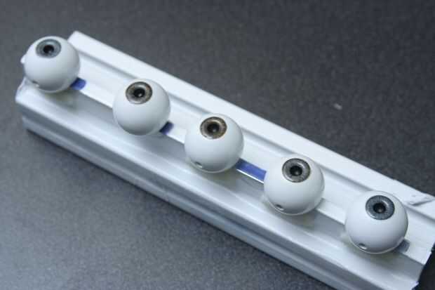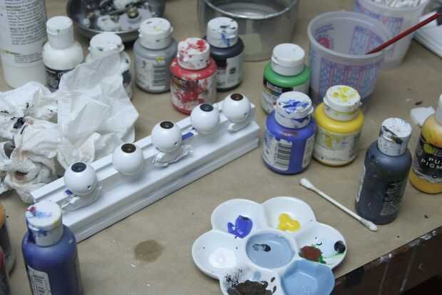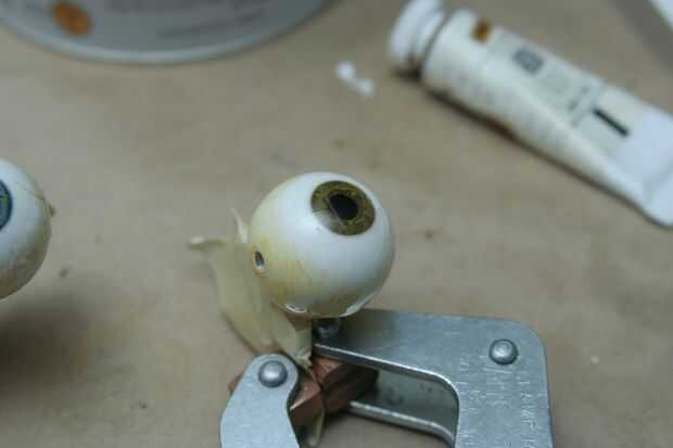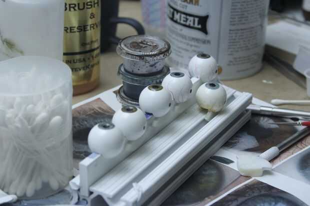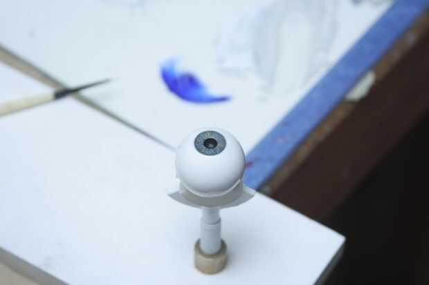 Utiliza la impresora 3D para crear globos oculares básicos pero la escultura realmente no viene juntos hasta que los ojos pintados.