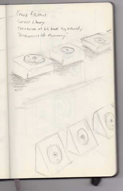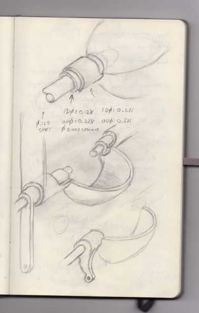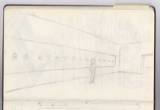 Normalmente empiezo mis diseños usando papel y lápiz de moda antigua. Es más rápido y me obliga a pensar más generalmente en la escultura y cómo alguien va a interactuar con él en su forma final. Quisiera que los ojos permanezcan escala humana – aproximadamente una pulgada de diámetro. También me gustaría la opción de montar la pieza directamente en una pared. Esto exige el mecanismo de no sobresalir más de 3 1/2 pulgadas en la cavidad de la pared. Apretar el mecanismo para el globo ocular y los párpados en un espacio tan reducido es un desafío para la siguiente fase.