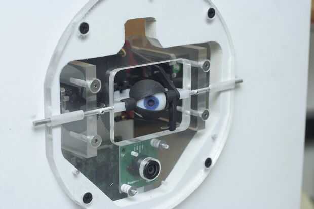 Todavía, un par de retos recortada para arriba: en primer lugar, los párpados superiores e inferiores del pivote sobre el mismo eje tan en alguna parte la parte superior y los párpados inferiores a frotar uno contra el otro. Mi solución fue bujes de cobre amarillo pequeña máquina que se deslizan sobre el eje para el párpado superior. Eso me da una de latón en ABS funcionamiento superficial que tiene posibilidades de funcionar bien.