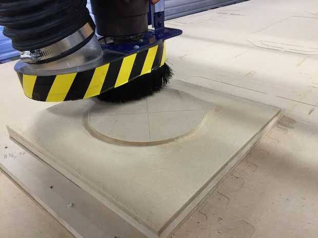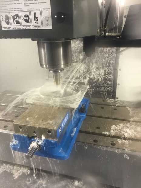 ¿Qué material para el molde? MDF fue sugerido y disponible así que algunos g-código generado y puesto en marcha el Shopbot. Funcionaba bastante bien pero el acabado era marginal y, puesto que me gustaría eventualmente construir veinte o más de estas, porque estaba un poco preocupada por la longevidad del molde. Formando unos trozos había reforzado estas preocupaciones así que cavaron alrededor y encontré algunos acrílico de chatarra. Mecanizado de acrílico es que más que el Shopbot pueden manejar. Afortunadamente, la residencia de Autodesk me da acceso a una máquina de fresado Haas. Mismo código de g pero un hermoso acabado. La próxima vez te de la máquina el molde de aluminio.