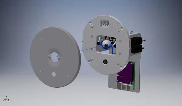 He pasado algún tiempo alrededor de vacío que forma el equipo, pero nunca he tenido una razón para tratar este proceso yo – hasta ahora. En esta escultura, quisiera ocultar el mecanismo lo más posible para que la atención se centra en el ojo más que el mecanismo de lo que se mueva. (Compare esta escultura con mi obra anterior, mira, donde el mecanismo es completamente expuesto.)