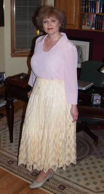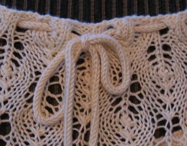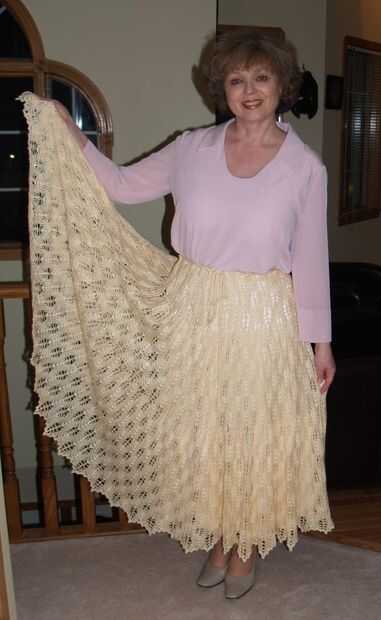 Una aguja circular hace hacer punto muy fácil y agradable. El borde de la falda se acaba en un lazo de puntilla apagado. MUY atractivo.