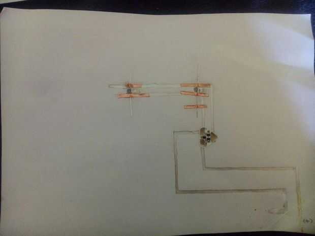 Tomar una célula de la moneda y ponerla en los polos positivo y negativo de esquina de la hoja y doblar el borde de la hoja como se muestra en la imagen.