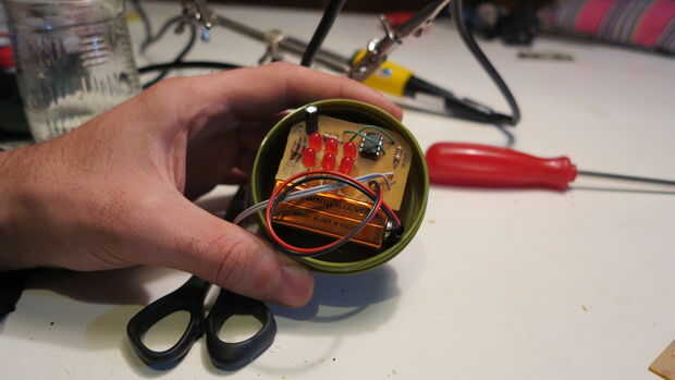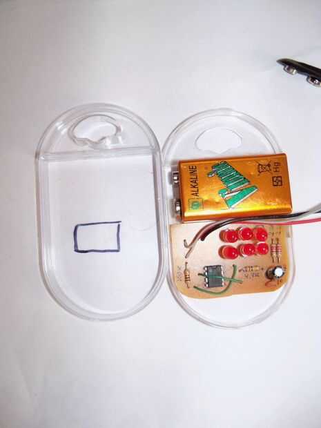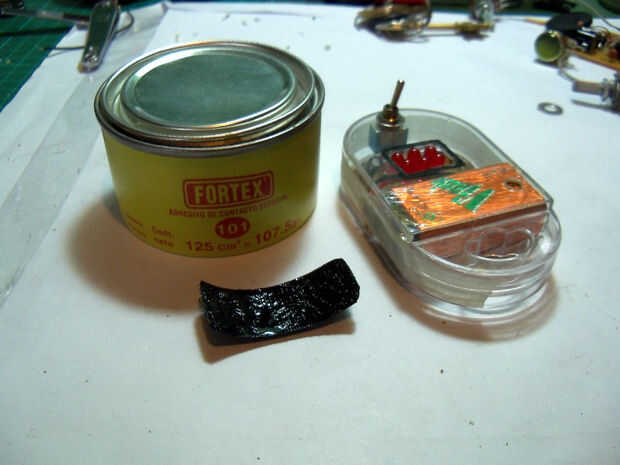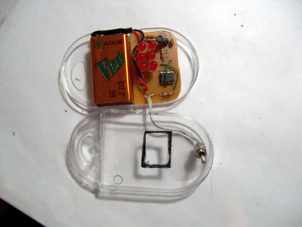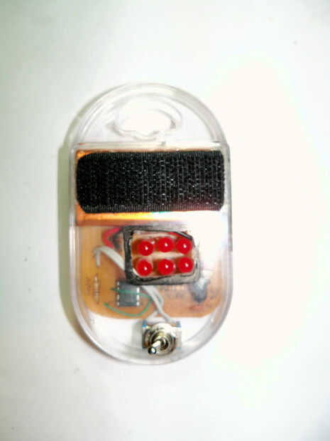 Después está todo listo y el circuito funciona, pegue un pedazo de velcro a su caso. Se utilizará para atar con correa la luz en su bicicleta.