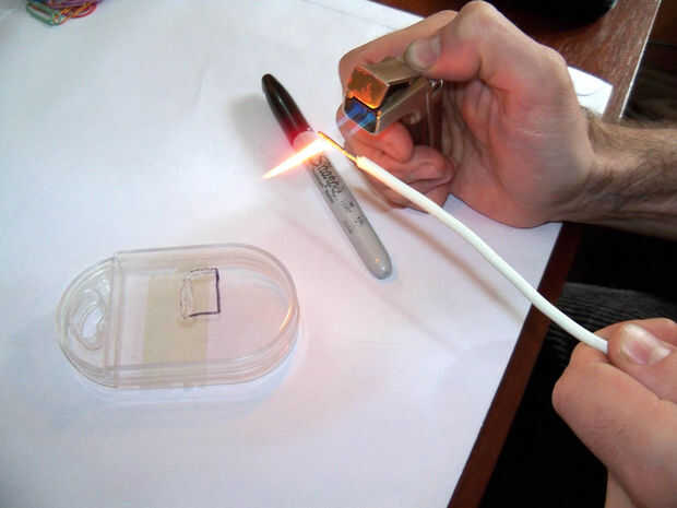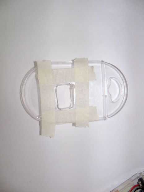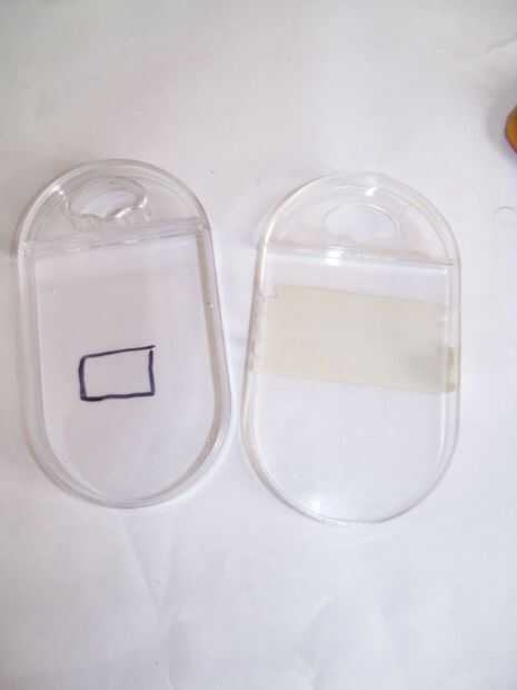 Como veis en la foto, nuestra primera opción era utilizar un envase plástico redondo, entonces nos encontramos con una caja de clip de papel transparente que terminó siendo un ajuste perfecto.