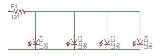 Para nuestro circuito, tendremos 4 LEDs en paralelo. Tenemos dos opciones para el resistor de la serie:
