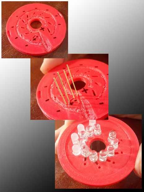 Una vez que pase todos los LEDs a través, es hora de montar la impresión "LED superior" en la bombilla LED.