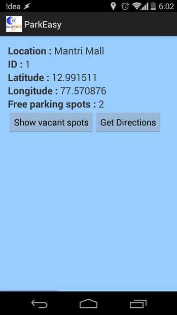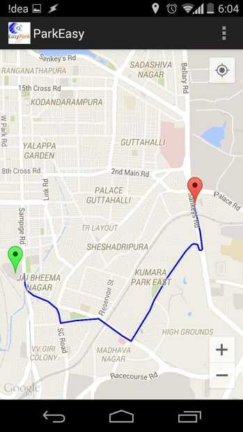 Hemos hecho una aplicación nativa Android que tiró datos de nube de análisis, calcula el aparcamiento más cercano al usuario y lo muestra. También hicimos una opción para el usuario utilizar servicios de mapas de Google para acceder al aparcamiento más cercano.