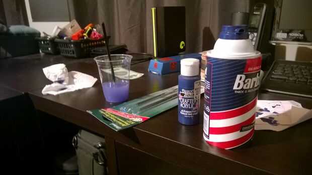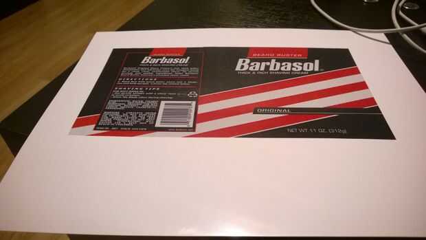 Hice un modelo de Barbasol diseño puede de la película (estoy bien así que estoy dando a usted ;)). I impreso en papel brillante y pegamento a mi can. Para pintar la parte superior de la lata usé el color azul marino.