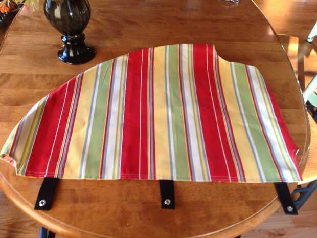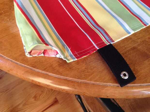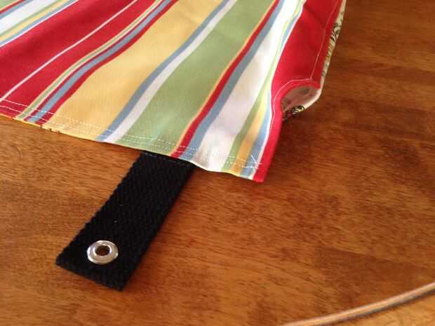 Instrucciones de costura: el fondo está listo para cortarse a la longitud, cierre dobladillada y cosida con las correas de nylon en sus lugares marcados, como se muestra en la primera foto. Por supuesto, las aberturas deben dejarse en las esquinas de la parte inferior del marco se deslice a través, como se muestra en las fotos segunda y terceros.