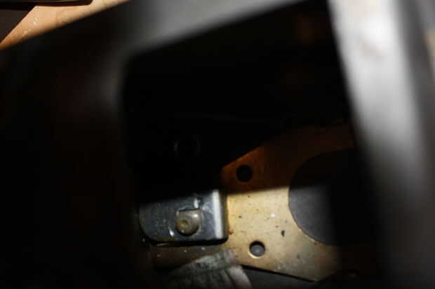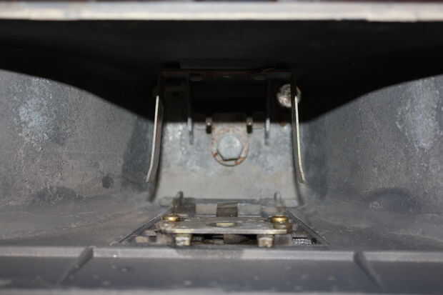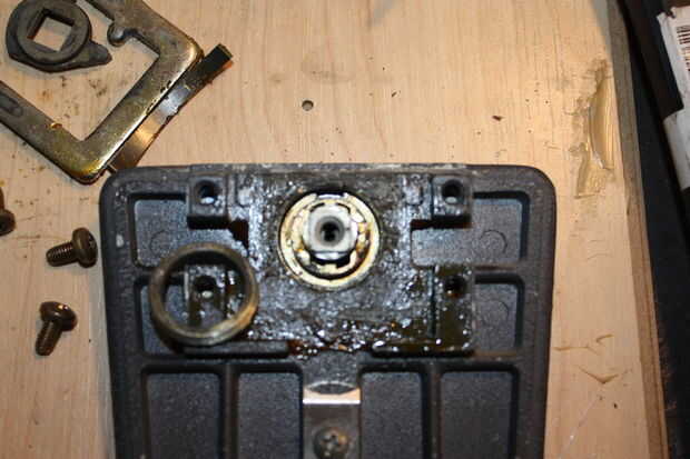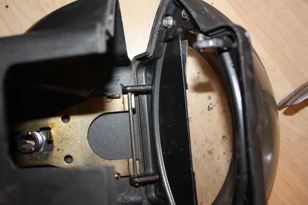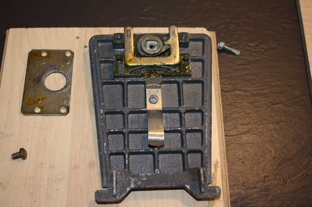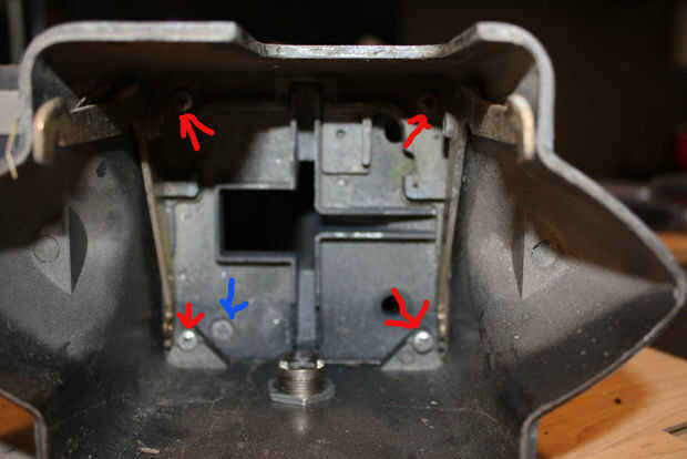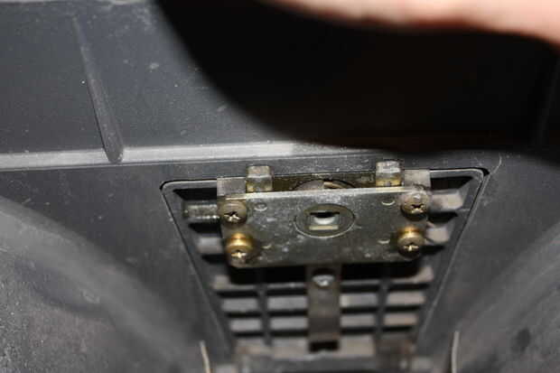 Con la mía había unas unas palancas con los resortes que pueden ser removidos con el fin de llegar a los tornillos que sujetan todo abajo. Esto permite una limpieza más fácil. Después de este paso que no pongo los tornillos delanteros nuevo para el retiro más fácil más adelante. Saque los 4 tornillos y repita para el otro lado si es necesario. Una vez hecho esto puede tirar todo para arriba.