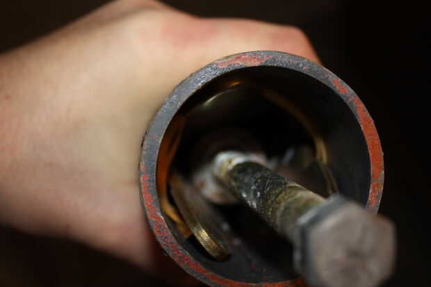Una vez que tenga su tuerca de puño puede quitar la palanca de bloqueo y empuje el cilindro hacia fuera. Esto le permite abrir la parte superior y en el resto de los tornillos. Si tienes un solo metro Felicidades ¡ casi listo! Si no se repita para el otro lado.
