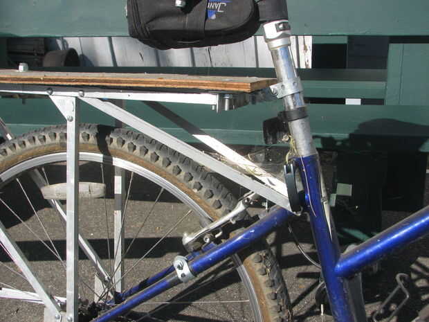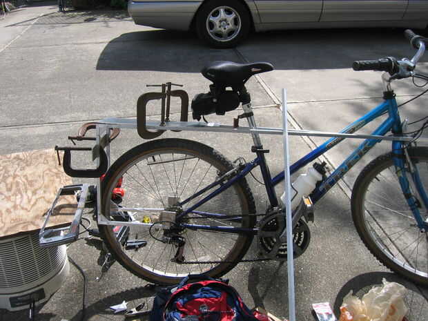 después de la construcción de mi primera moto trailer (con un árbol casero 3/8" varilla roscada con espaciador de tubo de 1/2" a 12" ruedas de cochecito, una 1/2" madera contrachapada marco de la cama con un brazo de remolque de conduc