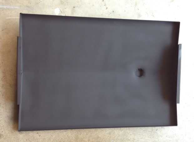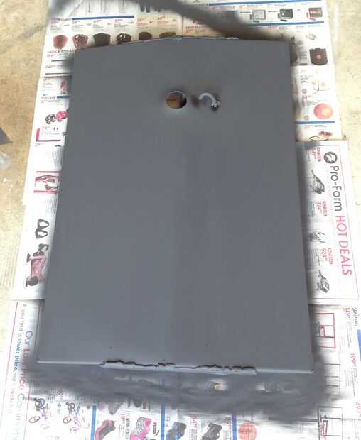 hice un pase final al chorro de arena las áreas soldadas en preparación para la pintura. Entonces, utilizando una pintura de alta temperatura para barbacoas cuidadosamente pintadas todas las superficies de la bandeja de goteo. Apliqué dos capas para retrasar la oxidación eventual de la sartén (que debe ser suficiente para durar más tiempo la vida útil de la parrilla).