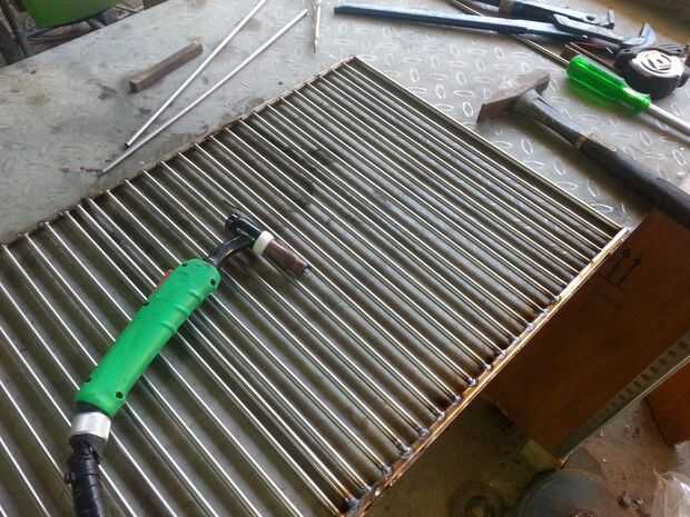 había estado buscando una vieja parrilla de hibachi-tipo antigua de hierro fundido pero parece que todo lo que existe ahora es barato pulsa modelos acero con parrillas de endebles. Decidí hacer mi propia de algunos canales de acero inoxidable que hab