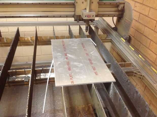 Las dimensiones de la base fue 22 y 1/4 x13 y 1/4 pulgadas aluminio 1/4 pulgadas de espesor. Ajuste de las piezas de aluminio con el cortador de plasma, tiró de mis archivos y que todo estaba en las coordenadas derecha. Cortando aluminio a dimensiones exactas, ahora estás listo para lijar los bordes y hacer los lados lisos.
