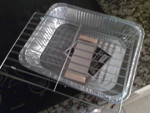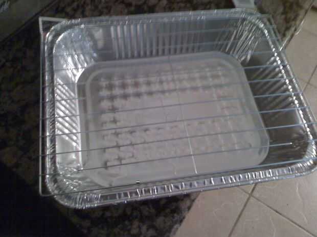 Los refrigeración racks tienen 4 sangrías en forma de triángulo apuntando hacia abajo esa línea casi perfectamente con la bandeja de lasaña. Alinee las muescas con la bandeja, la bandeja de enfriamiento se mantiene en su lugar, y eso es todo amigos. .