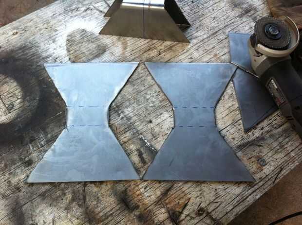 Trazado y corte 3 'pajarita' buscando piezas, había les había doblado y soldado con autógena las placas angulares.