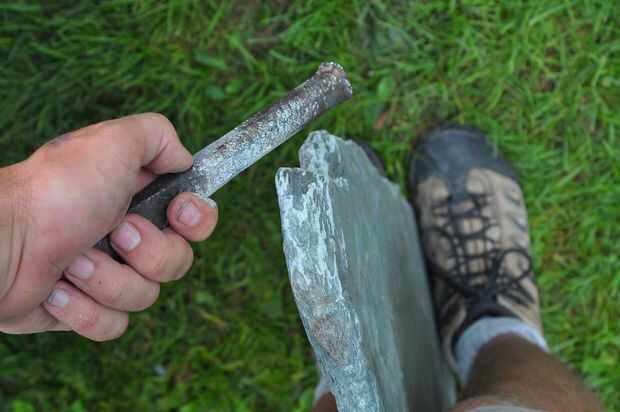 La pizarra de la izquierda era un poco más de trabajo. La pizarra fue áspera y puntiaguda, pero es una piedra muy blanda. He experimentado y encontrado que FROTANDO los bordes de la piedra con un cincel me permitió dar forma a la piedra un poco y suavizar las asperezas.