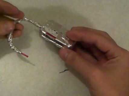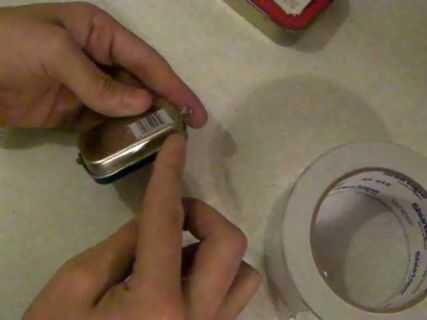 Una vez que la paja lista para estar en condiciones de trabajo necesita hacer un pequeño hueco en la pequeña Altoids sólo lo suficientemente grande como para caber el enchufe de la bala. Usted deberá colocar el tapón en el orificio y envolver el lado del recipiente con cinta de aluminio para evitar que el gas escape al lado de la caja de Altoids.