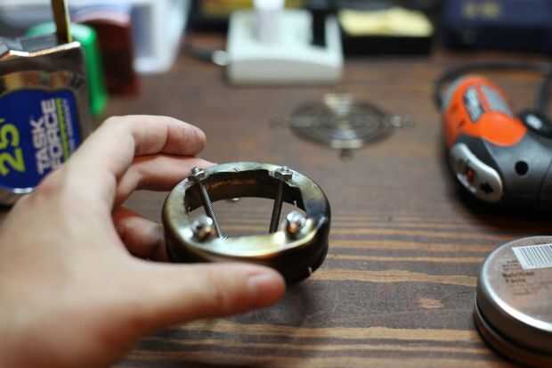 Para las patas restantes debe atornillar las tuercas en a mitad de camino, alineados con los agujeros de la rejilla y luego empujarlos hasta fijándolos con una segunda tuerca en el extremo. Usted probablemente tendrá que doblar las pestañas un poco más en este punto para conseguir la alineación correcta.