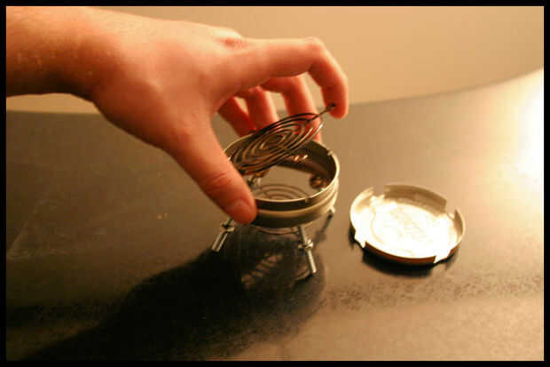 Simplemente quite la rejilla superior, establecer un briquetas en la parrilla inferior, vuelva a instalar la rejilla superior y la briqueta de la parte inferior de la luz. En ningún momento debe ser despedido y listo para ir!