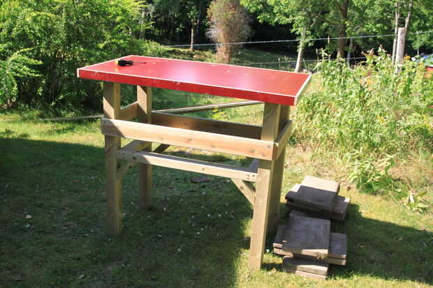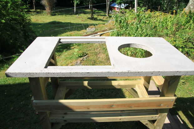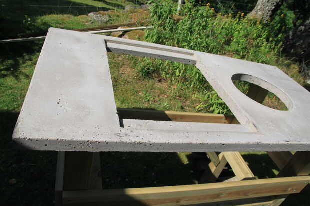 Me di cuenta cuando estaba a punto de hacer esto que realmente no había moldeado el soporte de madera junto con la parte superior de hormigón. Los pernos habían presionado en el concreto pero que no había llenado para arriba alrededor de él. Esto hizo el quite superior capaz y todavía tenía algunos pernos instalados en ranuras en la pizarra que le impide deslizamiento.