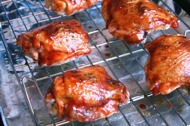 Saque el pollo nuevamente hacia afuera, cepillo del lado carne con otra capa de salsa, entonces voltee y cubrir la piel otra vez. Ahora pondremos en durante los últimos 20 minutos! Debe ser perfecta en este momento, pero si eres nervioso no dude en consultar con un termómetro - debe ser 165 F.