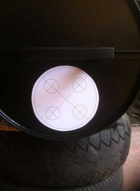 Hice una plantilla para los agujeros de ventilación en illustrator de adobe e impreso que sirva de guía. Utiliza una sierra del agujero de 40mm para cortar los agujeros.